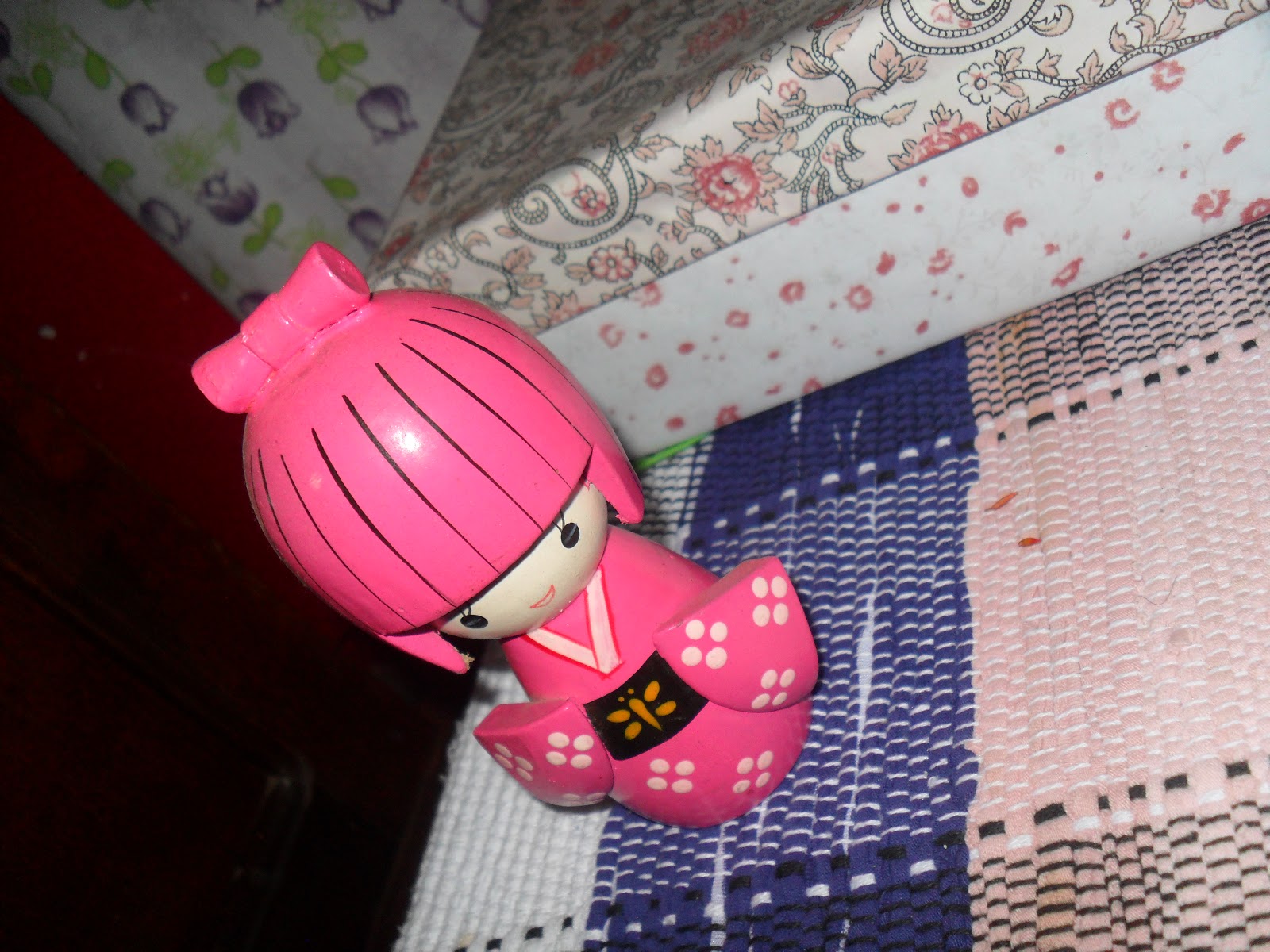 Essa borboleta era um prendendor de cabelo , mas eu sempre a achei tão linda que resolvi dar lhe um lugar de honra . Por isso fiz o quadrinho e a caixa com papel de presente combinantes , coloquei a minha bonequinha rosa ( a vermelha fica no quarto ). E para dar um "tchan", coloquei também a garrafa/vaso , que sempre ganha uma rosa pra chamar de sua .